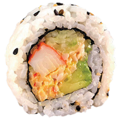 I/ Crab, Cucumber, Avocado, Tampico, Yaki Nori. O/ White Rice, Sesame Seeds.